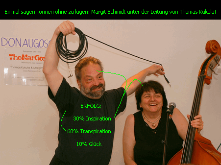 Margit: Kontrabass, Gitarre, Gesang, Sprechstimme, auch Blödeln